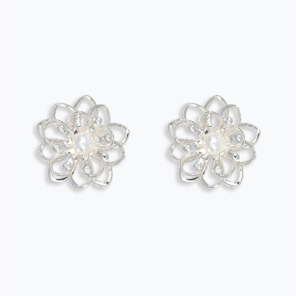 Delicate Silver Flower Earrings with Pearls