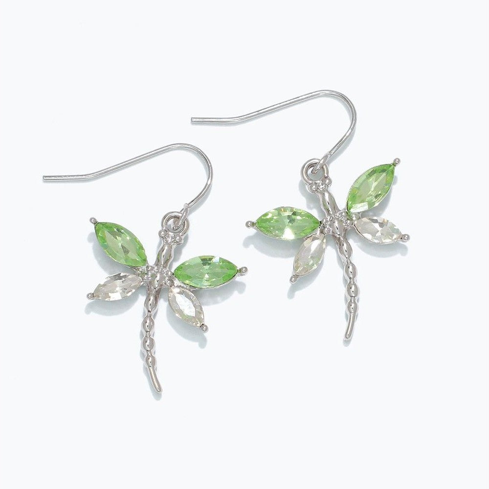 Fanciful Crystal Dragonfly Earrings in Spring Green and Clear